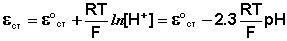 Хингидронный электрод является т.н. окислительно-восстановительным электродом (см. разд. 3.5.5); зависимость его потенциала от активности ионов водорода имеет следующий вид: