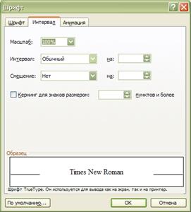 Для изменения параметров символов используется команда Меню - Формат - Шрифт которая вызывает диалоговое окно Шрифт(рисунок6.5). Вкладыш Шрифт используется для установления параметров шрифта.