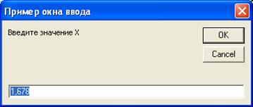 Введенное пользователем значение будет преобразовано к типу Double и присвоено переменной Х. Если пользователь не будет вводить значение, а просто нажмет кнопку OK, переменной Х будет присвоено значение по умолчанию 1.678.