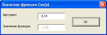 После конструирования формы и написания кода в модуле формы выберем команду Run ® Run Sub/UserForm, либо нажмем клавишу <F5>, либо кнопку панели инструментов Standard, и форма отобразится поверх активного рабочего листа Excel. Введем значение аргумента и нажмем на кнопку OK.
