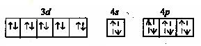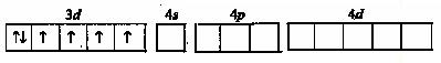 Обозначим электрон на орбиталях, занятых по донорно-акцепторному механизму пунктирными стрелками. Тогда электронную конфигурацию комплекса можно представить в виде: