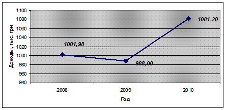 Динамика доходов предприятия ООО”Аквалит”представлена в таблице 4.3. График динамики изменения доходов в течение трёх лет (2008-2010 гг.) представлен на рисунке 4.1.