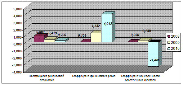 Этот коэффициент дает наиболее общую оценку финансовой устойчивости. Он имеет довольно простую интерпретацию: показывает, сколько единиц привлеченных средств приходится на каждую единицу собственных. Рост показателя в динамике свидетельствует об усилении зависимости предприятия от внешних инвесторов и кредиторов, то есть о снижении финансовой устойчивости и наоборот.