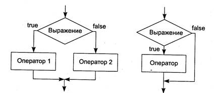 Если выражение имеет значение true, выполняется первый оператор, иначе — второй (рис. 1.1). Ветвь else может отсутствовать. После выполнения операторов из соответствующей ветви управление передается оператору, следующему за условным оператором.
