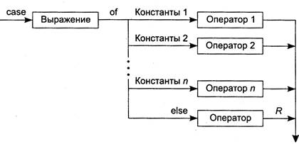 Оператор варианта (выбора) используется для реализации алгоритмов, имеющих приведенную на рис. 1.2 структуру. Решение о том, какой именно оператор выполнить, принимается после анализа значения выражения порядкового типа. Выполняется оператор (простой или составной), записанный после константы, с которой совпало значение выражения.