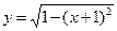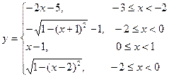 if (x>=-2) and ( x<0 ) then y:=-sqrt(1-sqr(x + 1)) - 1;