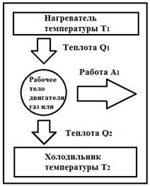 Любой тепловой двигатель состоит из 3-ех основных частей: