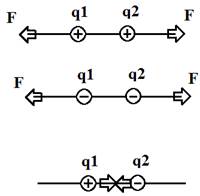 Сила взаимодействия между двумя неподвижными точечными зарядами прямопропорц. произведению их величин обратно пропорционально квадрату расстояния между ними. F=k*q1*q2/R2ƹ (H)