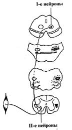 Здесь располагаются тела вторых нейронов. Аксоны переднего пирамидного пути проводят импульсы к мышцам туловища, а бокового – к мышцам конечностей.