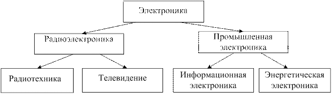 Электроника – отрасль науки и техники, занимающаяся изучением физических основ функционирования, исследованием, разработкой и применением приборов, работа которых основана на протекании электрического тока в твердом теле (полупроводниковые приборы), в вакууме (электронно-ваккуумные приборы) и газе (ионные приборы). Главное место среди них в настоящее время занимают полупроводниковые приборы. Электроника подразделяется на два крупных научных направления (рис. 1.1):