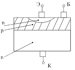 Структурная схема маломощного биполярного транзистора n-p-n-типа приведена на рис. 6.2.
