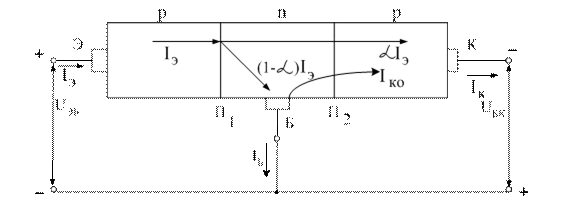Рис. 6.8. Распределение токов в схеме с общей базой