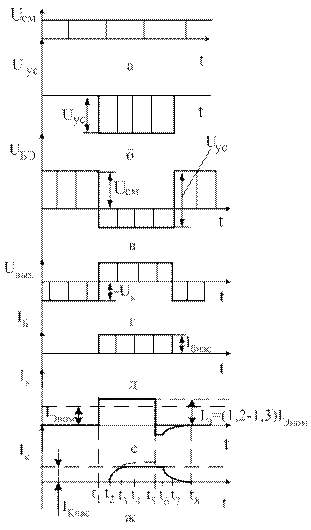 Ток эмиттера IЭ появляется практически мгновенно, его задают в ключевых схемах на 20-30% больше номинального тока IЭ ном. Превышение тока эмиттера над номинальным называется избыточным током, а отношение