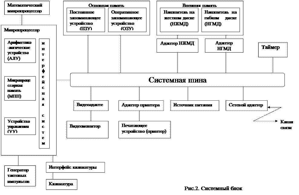 Конструктивно персональные компьютеры выполнены в виде центрального системного блока, к которому через специальные разъемы присоединяются другие устройства.
