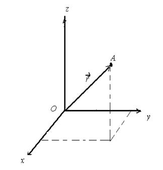 Положение точки А в данный момент времени по отношению к этой системе координат характеризуется тремя координатами х, у и z или радиусом-вектором