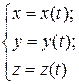 Уравнения (2.1) называют скалярными кинематическими уравнениями движения или уравнениями движения материальной точки в параметрическом виде, где время служит в качестве параметра.Они определяют движение материальной точки координатным способом.