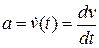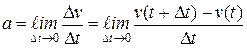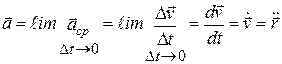 Производная скорости по времени называется ускорением материальной точки. Ускорение мы обозначим через а. Таким образом, по определению ускорения