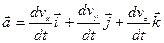 - ускорение представляет собой первую производную вектора скорости по времени;
