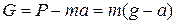 | Для пояснения сказанного полезно рассмотреть показания весов, на которых стоит гиря. В неподвижном состоянии на гирю действуют две силы – сила тяжести и сила реакции опоры (весов), причем . Если весы движутся вниз с ускорением а (см. рис.4.3),то уравнение второго закона Ньютона, записанное в неподвижной системе координат[1], имеет вид: