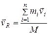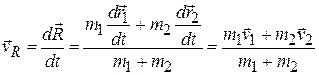 Скорость центра масс системы материальных точек также выражается через массы и скорости отдельных материальных точек системы. Действительно, в силу определения скорости запишем выражение для скорости центра масс в виде: