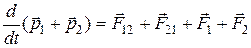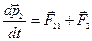 – силу, действующую на вторую точку со стороны первой. Сумму внешних сил, действующих на первую и вторую точки, обозначим через