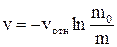 Значение постоянной интегрирования С определяется начальными условиями. Допустим, что в начальный момент времени скорость ракеты равна нулю, а ее масса равна