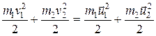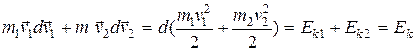 Пусть массы соударяющихся частиц (материальных частиц) равны