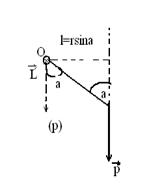 По аналогии с моментом силы, моментом импульса материальной точки (частицы) относительно точки О называется векторная величина