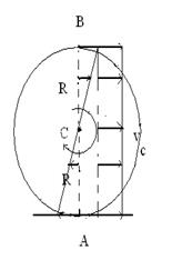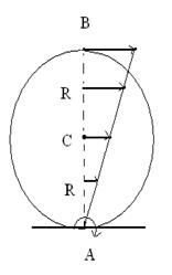 без скольжения по плоскости. Скорости точек цилиндра можно представить как обусловленные: а – одним лишь вращением вокруг оси А с угловой скоростью