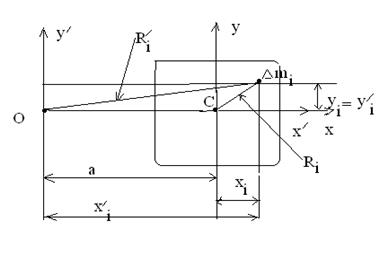 Рассмотрим произвольное тело и две параллельные друг другу оси, одна из которых (ось С) проходит через центр масс тела, а другая (ось О) отстоит от первой на расстояние а (рис. 7.11). Выберем оси координат