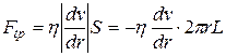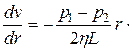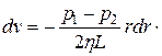 Здесь знак минус поставлен потому, что скорость убывает с расстоянием от оси трубы, следовательно,