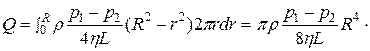 Полный расход Q через все поперечное сечение трубы определяется суммой расходов через все кольцевые площадки, на которые может быть разбито поперечное сечение. Он равен интегралу от dQ в пределах от r=0 до r=R: