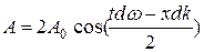 «Сконструируем» простейший волновой пакет из двух распространяющихся вдоль положительного направления оси х гармонических волн с одинаковыми амплитудами, близкими частотами и волновыми числами, причем