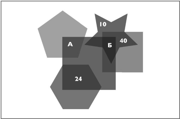 Здесь ваша задача – уяснить логику, стоящую за расположением чисел в этих фигурах, а потом вычислить частное суммы Б и суммы А. Такого рода загадки хороши как ментальная разминка и помогают усилить остроту мысли: работа мозга в этом направлении поможет вам блестяще проявить себя, когда ваша память подвергнется испытанию.