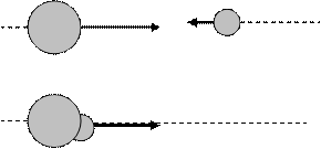 3. Абсолют серпімсіз соққы. Абсолют серпімсіз соққы-соққы нәтижесінде екі дене тұтас дене сияқты бірге қозғалады. Абсолют серпімсіз соққыны көрсету үшін бір-біріне қарама-қарсы келе жатқан екі шардың қозғалысын қарастырамыз (12-сурет).