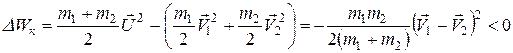 Кинетическая же энергия, которой обладала система до удара, после соударения уменьшается или стремится к нулю. Изменение кинетической энергии: