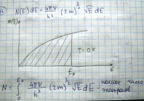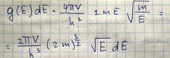 Это есть плотность состояний, выражающая число микросостояний частицы, приходящихся на единичный интервал энергии dE. В случае электронов каждой фазовой ячейке отвечает не одно, а два энергетических состояния отличающихся направлением спинов