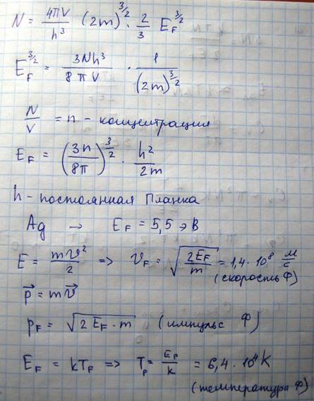 Выясним теперь, как связаны энергии Ферми с концентрацией электронов в металле. Прежде всего, получим соотношение для плотности состояния электронов в металле. Как известно, в соответствии с принципом неопределенности Гейзенберга, состояние микрочастиц, к которым относятся и электроны