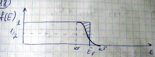 При обычных температурах, в которых энергия kT<<Ef возбуждению подвергаются электроны, лежащие в узкой полоске шириной kT. Переход электронов на более высокие уровни приводит к расплыванию функции распределения Ферми-Дирака, то есть к появлению хвоста функции распределения