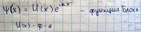 В этом случае вероятность обнаружения электрона в данном месте кристалла должна быть периодической функцией координаты, так как положение отличающееся друг от друга на величину равную периоду решетки??? Различным только может быть положение электронов в пределах одного периода.
