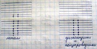 Изменяющиеся значений эффективной массы электрона в кристалле обусловлена тем, что в кристалле полная энергия электрона Eэл.крист=U+Ek, Eэл.своб=Ek. При движении электрона под действием внешней силы, часть работы этой силы может перейти в кинетическую энергию, а часть в потенциальную. В случае свободного электрона вся работа внешней силы переходит в кинетическую энергию, следовательно, доля работы переходящая в кинетическую энергию в кристалле будет меньше, что означает уменьшение скорости движения электрона, а это соответствует возрастанию массы. В предельном случае, когда вся работа внешней силы переходит в потенциальную энергию электрона, он будет вести себя в кристалле как частица с бесконечно большой массой. Если же при движении электронов в кристалле потенциальную энергию будет переходить не только вся работа внешней силы, но и часть кинетической энергии электрона, то по мере движения такого электрона его скорость будет уменьшаться. он будет замедляться, то есть он будет вести себя как частица с отрицательной массой. В кристалле масса электрона переменная величина. Каждая энергетическая зона содержит ограниченное число энергетических уровней (равное число атомов), и в соответствии с принципом Паули на каждом уровне моет находиться не более двух электронов. При ограниченном числе электронов содержащихся в кристалле заполненными окажутся лишь наиболее низкие энергетические уровни. По характеру заполнения зон электронами все вещества в природе можно разделить на две большие группы. К первой группе относятся вещества у которых над полностью заполненной зоной располагаются зоны, заполненные лишь частично, такие зоны возникают в том случае когда атомный уровни с которых она образована, заполнена лишь частично. Такая ситуация например реализуется в случае щелочных элементов. Наличие зоны заполненной лишь частично присуще металлам. Ко второй группе веществ относятся вещества, у которых над полностью заполненной зоной располагается пустая зона. Типичным и примерами являются химические элементы 4 группы таблицы Менделеева, такие как углерод в модификации алмаза, кремний, германий, серое олово, так же имеющее модификацию алмаза. К этой же группе веществ относятся и многие химические соединения. В том числе окислы металлов (нитриты. карбиты и т.д.)