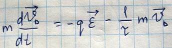 Из этого уравнения видно, что после включения поля E скорость электрона будет возрастать до тех пор, пока сила сопротивления не уравновесит силу, действующую со стороны действующего поля, после этого скорость будет равномерна