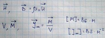 Магнитные характеристики вещества во многих отношениях формально сходны с его диэлектрическими характеристиками вещества. Например, наведенная магнитная поляризация (намагниченность) аналогична электрической поляризации. Существуют атомы и молекулы с постоянными магнитными диполями точно так же как существуют атомы и молекулы с постоянными электрическими диполями (полярные молекулы). Ряд материалов обладают спонтанной намагниченностью, такие материалы называются ферромагнетики, точно так же как некоторые материалы называются спонтанной поляризацией (сегнетоэлектрики). Необходимо, однако, отметить одно важное различие между магнитными и электрическими свойствами вещества. В природе существуют индивидуальные электрические заряды (монополи) которые могут быть как положительными так и отрицательными, соответствующих магнитных монополий, пока так называемых монополий Дирака. Все магнитные моменты обусловлены замкнутыми токами. Поместим в однородное магнитное поле с напряжённостью H и индукцией B однородное тело объемом V, это тело намагнитится и приобретет магнитный момент М, который является величиной векторной