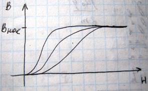 Процесс намагничивания ферромагнетиков характеризуется наличием петли гистерезиса, аналогично тому, как это выполняется для сегнетоэлектриков. Петля гистерезиса для ферромагнетика имеет следующий вид:
