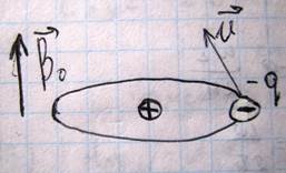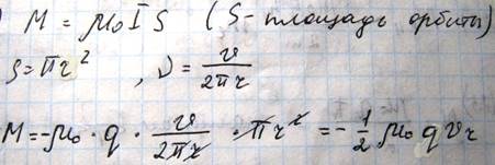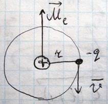 Электрон, вращающийся вокруг ядра, создает ток, величина которого I= -q*ν, где ν - частота обращения электрона, то есть число оборотов в единицу времени, магнитный момент этого тока