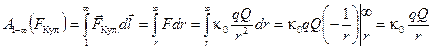 Поместим заряд q в поле точечного заряда Q. Первоначально расстояние между зарядами — r. Отпустим заряд q. Под действием электрической силы отталкивания заряд q удалится в бесконечность (рис. 3.2.). На этом перемещении кулоновская сила совершит работу: