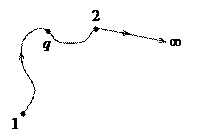Ещё раз обратимся к вычислению работы электрической силы при перемещении заряда q из точки 1 теперь уже произвольного электростатического поля в бесконечность. Поскольку эта работа не зависит от формы траектории, унося заряд в бесконечность, пройдём предварительно точку 2 электростатического поля (рис. 3.4.).