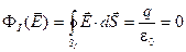 Выделим внутри заряженного проводника гауссову поверхность (I). Поскольку поле внутри проводника отсутствует, поток вектора напряжённости через эту поверхность равен нулю