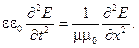 Теперь найдем связь между мгновенными значениями напряженности электрического (Е) и магнитного (Н) полей. Для этого первое уравнение продифференцируем по t, а второе — по x: