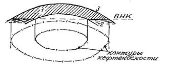 Рис. 1. 1. Антиклинальный тип нефтяной залежи в разрезе и плане: